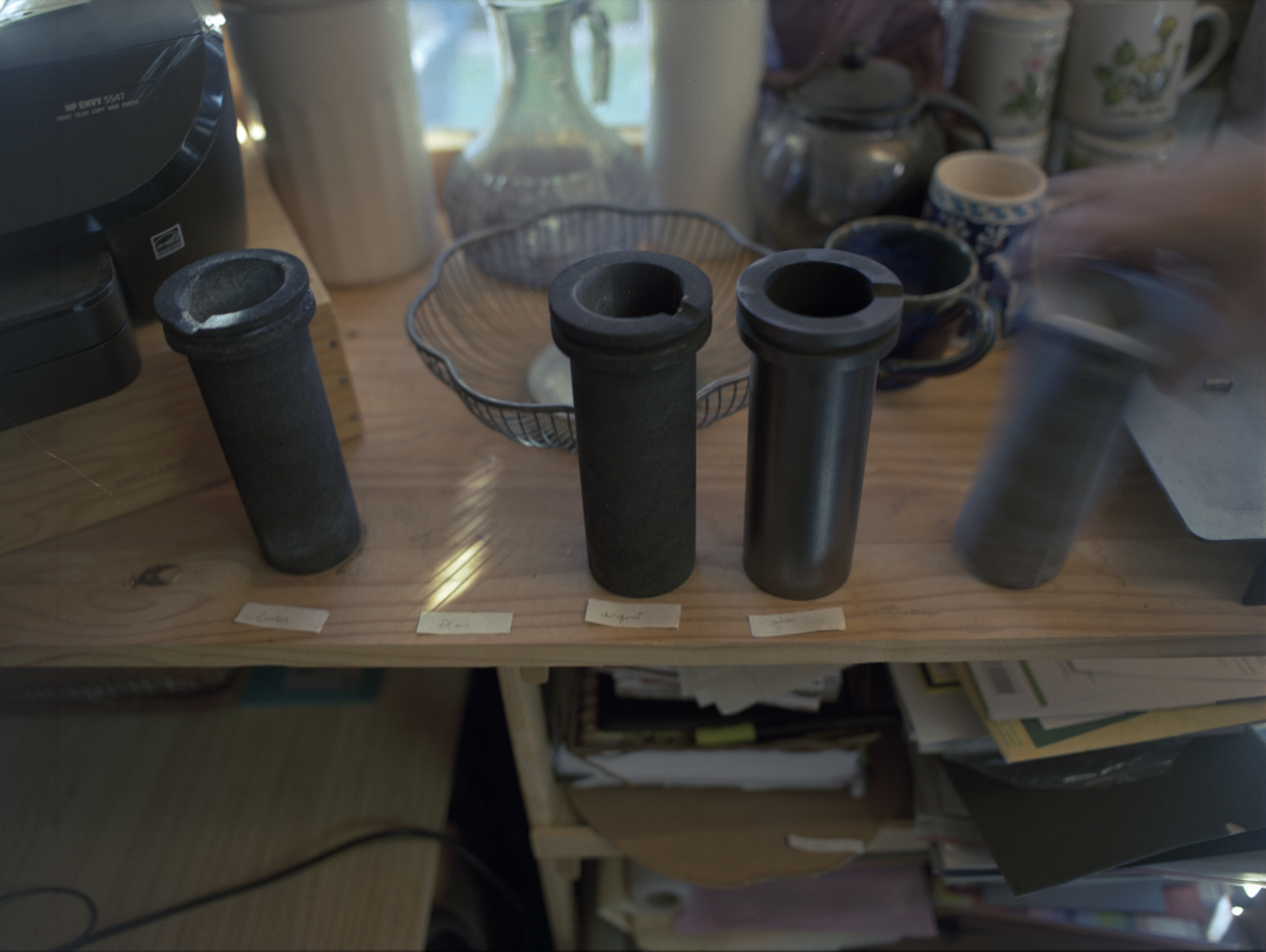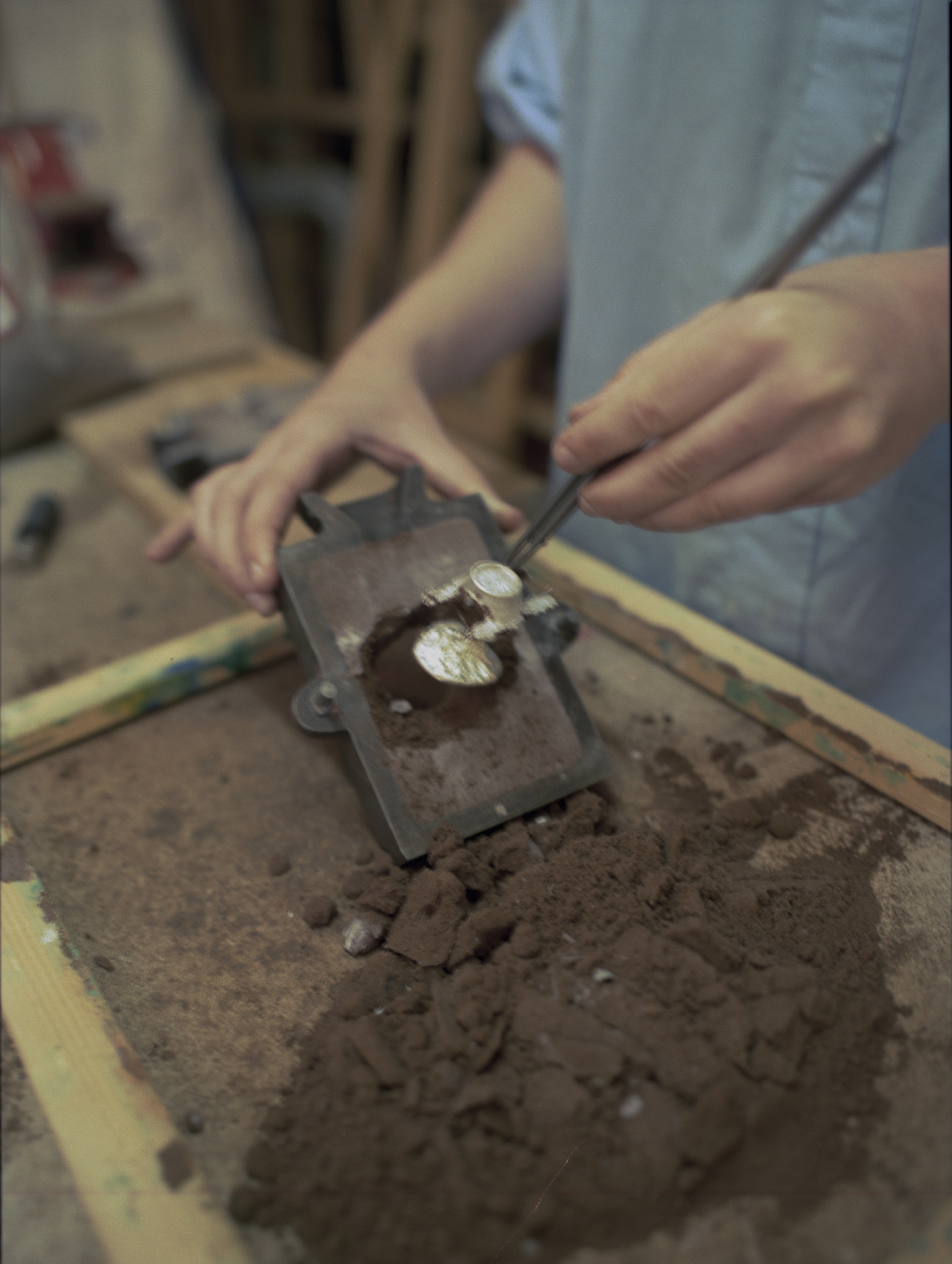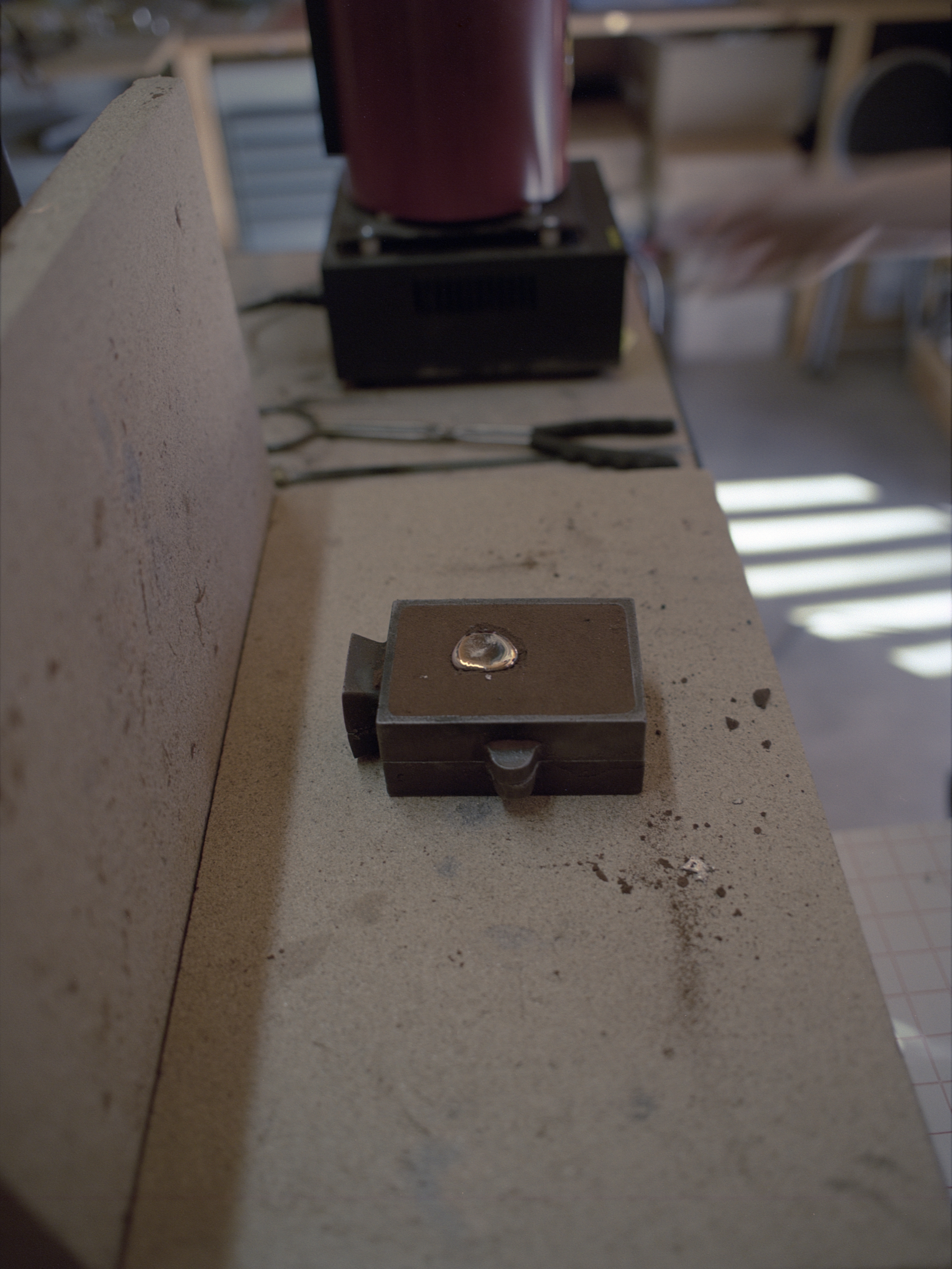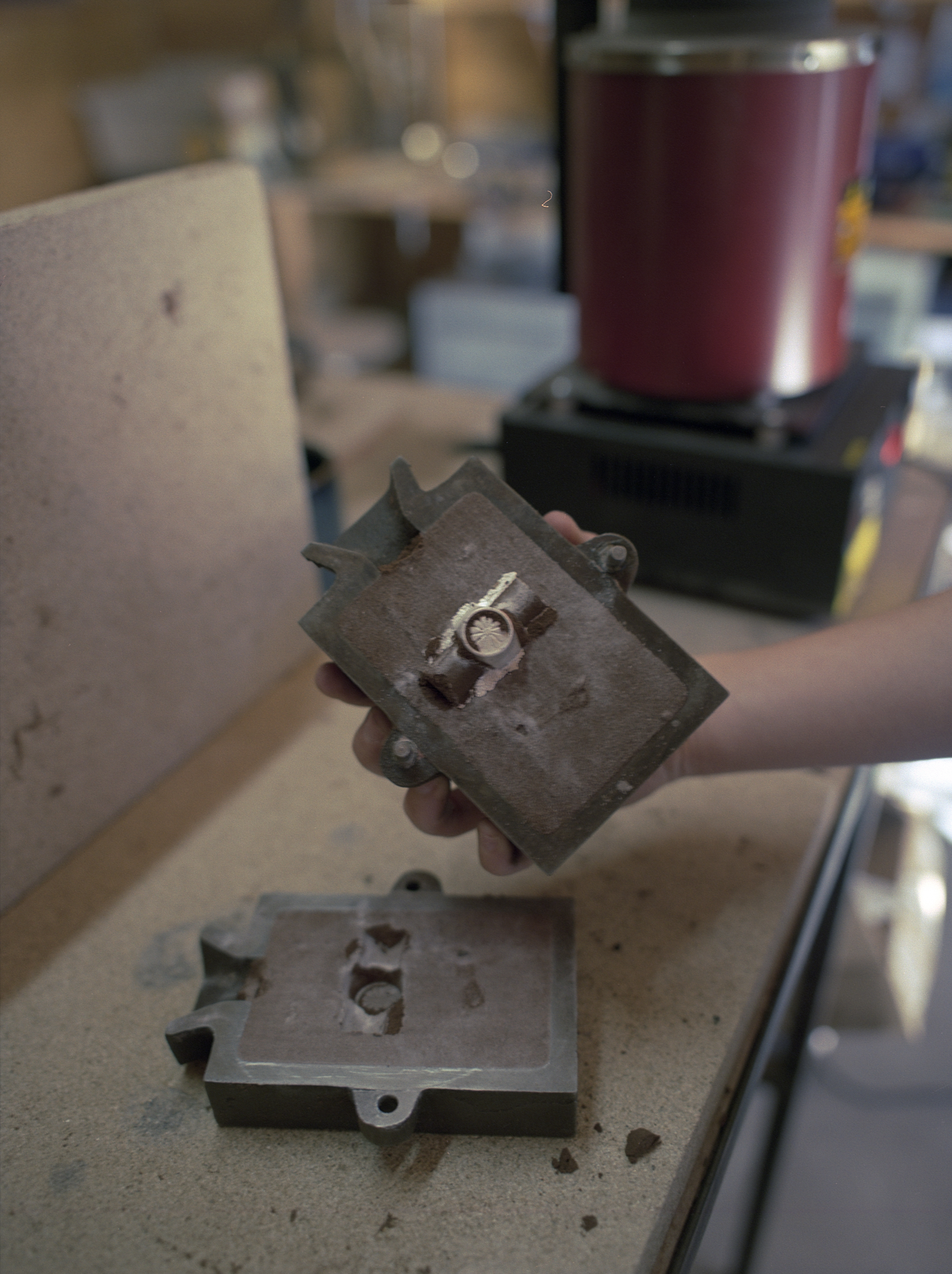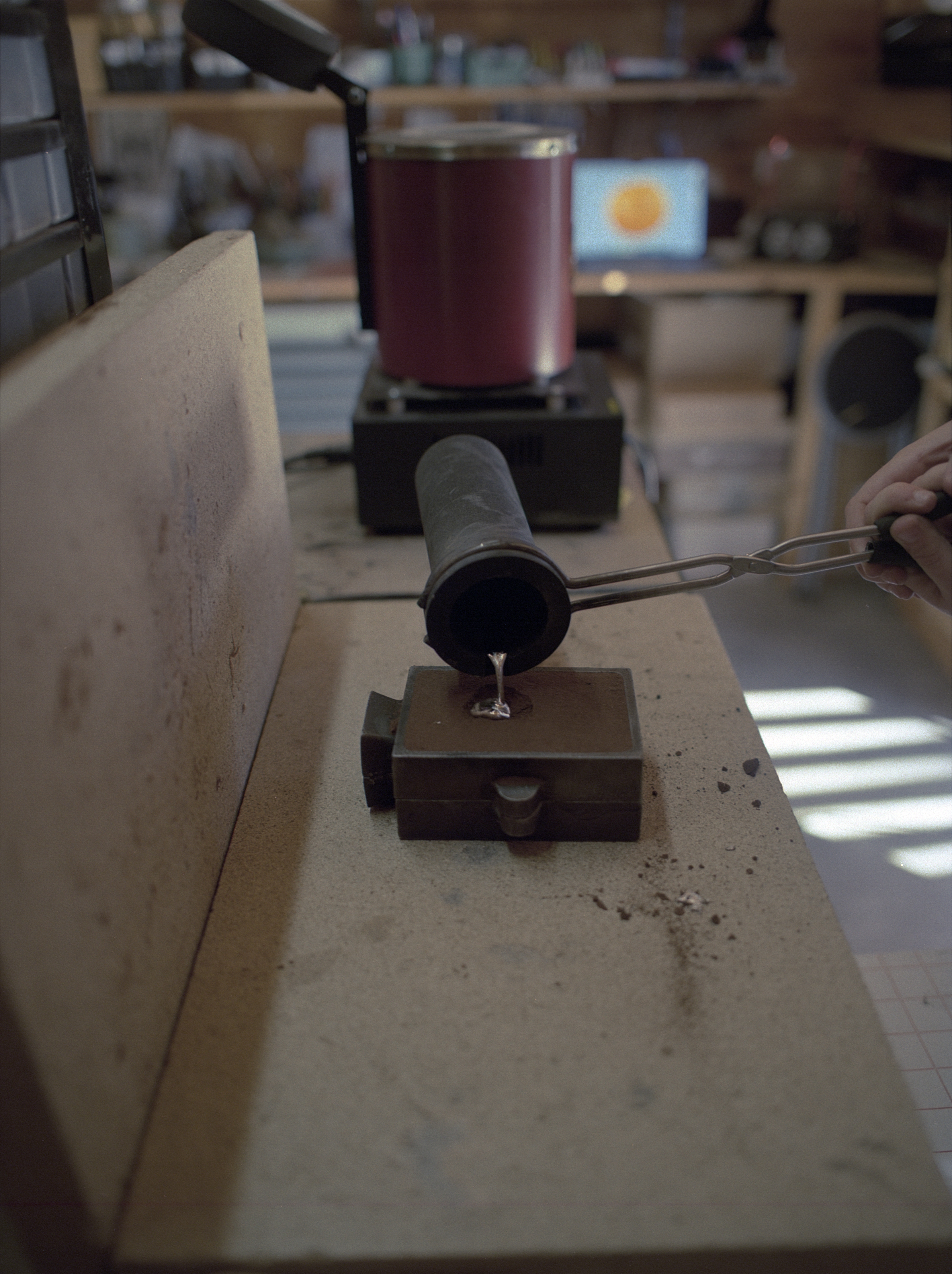 Cette impression lui donne un moule qu’elle utilise ensuite pour créer son empreinte dans la terre et couler sa matière : de l’étain recyclé ou du laiton. Lors de ma visite, elle est en attente de son poinçon d’authenticité pour les prochaines pièces en argent qu’elle réalisera !