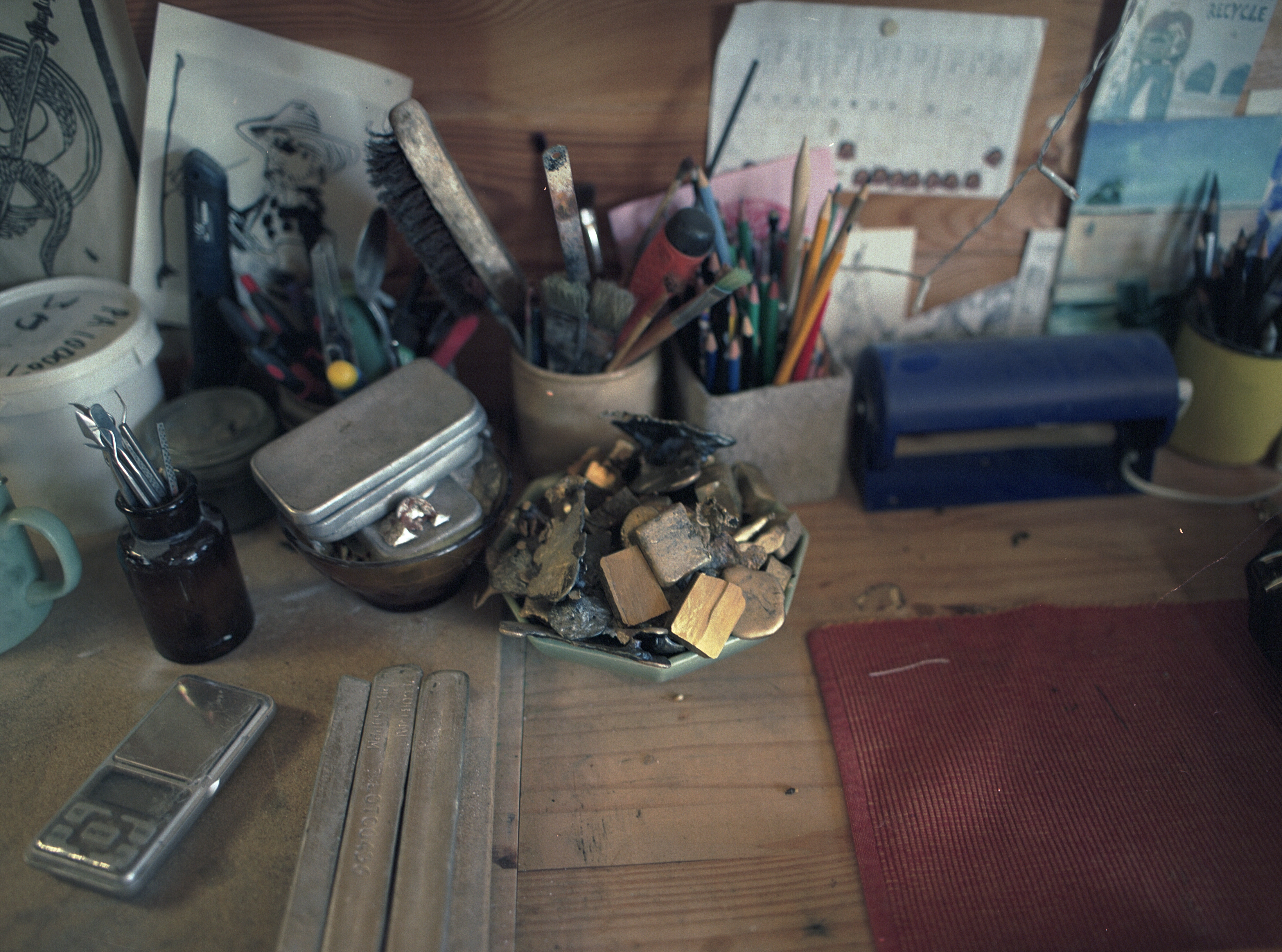 This print gives her a mold that she then uses to create her impression in the clay and cast her material: recycled tin or brass. During my visit, she is waiting for her authenticity stamp for the next silver pieces she will be making !